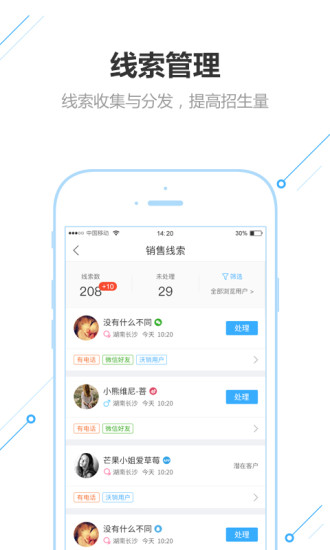 线索分析:通过用户行为埋点与大数据建模,实时生成可视化数据看板,精确追踪每篇内容的转化路径。系统自动标记高意向学员线索,并支持多维度筛选与分级管理,帮助机构将获客成本降低40%以上。
