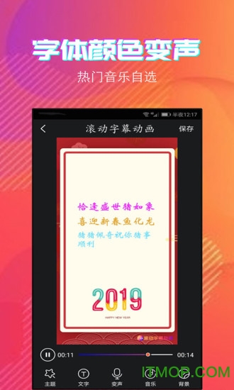文字视频秀:提供数十种动画背景风格和上百种文字字体选择,支持自定义视频配乐,让您的小视频更具个性魅力!
