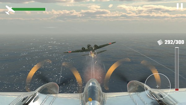 驾驶传奇战机-控制P-51野马、P-38闪电、P-40战鹰、F4F野猫、F6F地狱猫、喷火战斗机等标志性飞机!每款战机都拥有独特的飞行特性和战斗风格,玩家需要根据任务需求选择最适合的座驾。
