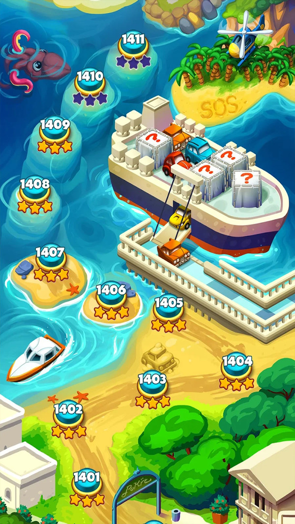 游戏拥有丰富的关卡设计,每个关卡都带来不同的挑战和乐趣。玩家需要仔细观察关卡布局,制定合理的消除策略。游戏会根据玩家的表现实时计算分数,并记录玩家的最高成绩。想要获得高分,玩家必须熟练掌握游戏规则,并合理利用道具。游戏中的道具需要通过关卡解锁,每个道具都有独特的功能,例如炸弹可以清除周围车辆,而交换道具可以帮助玩家调整车辆位置。只有充分了解道具的作用,才能在关键时刻发挥最大效果。