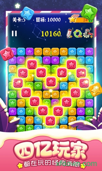 【经典玩法】点击两个及以上相同颜色的星星即可消除,走心的游戏设计配合无尽的关卡模式,让你享受痛快消除的乐趣。