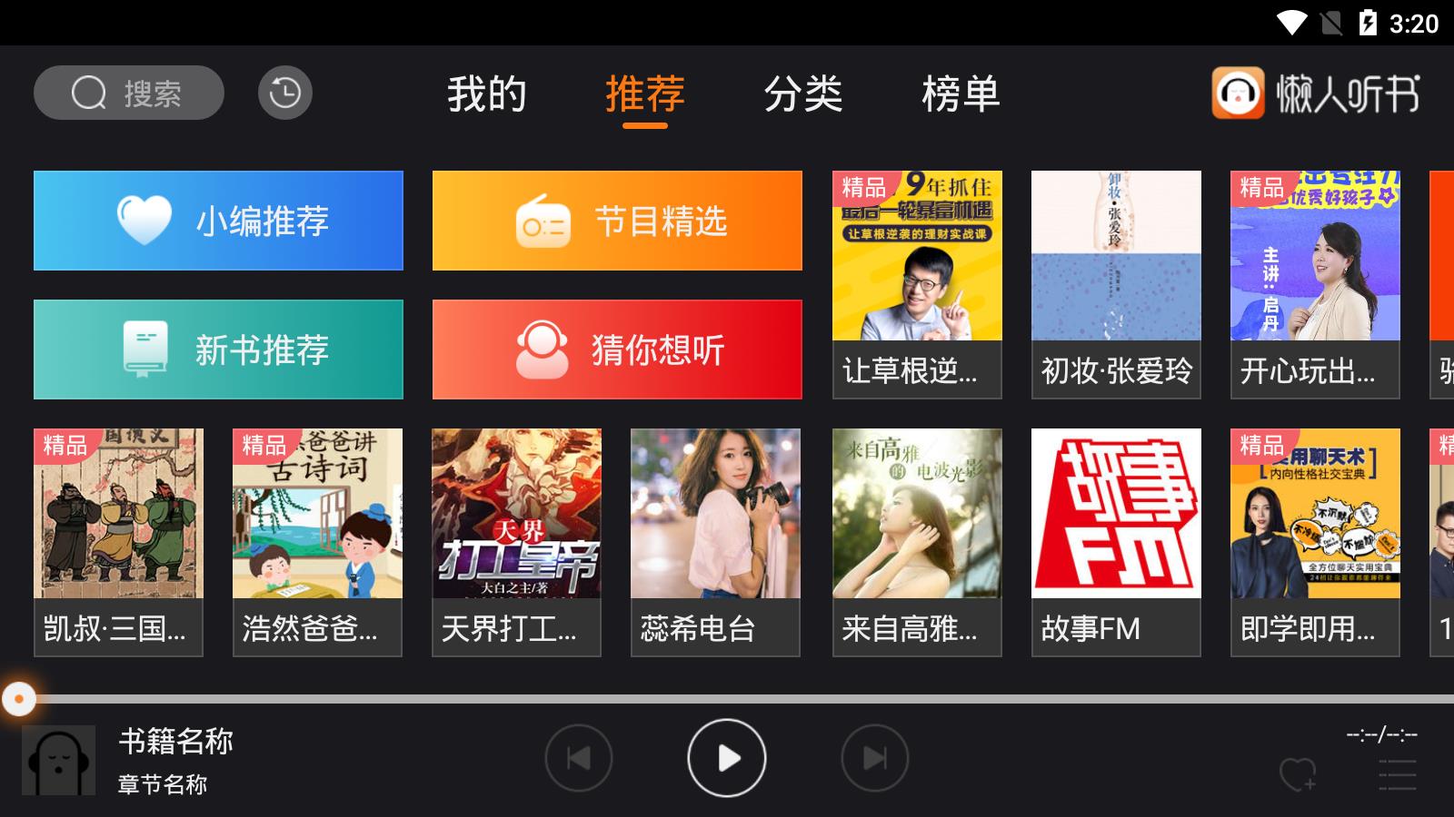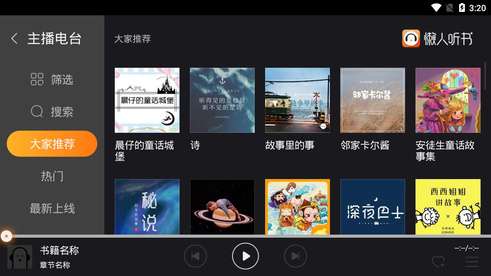 上传节目:开放式的平台设计,让每个用户都能成为懒人主播,自由上传和收听节目。