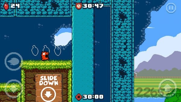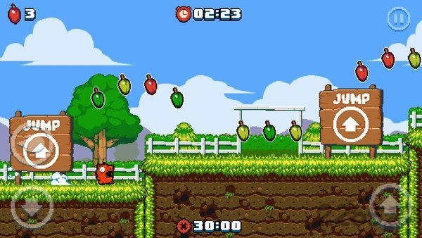 操作方面,游戏采用极简的三键控制方式,但通过组合可以施展出多种动作。玩家需要掌握跳跃、滑行和前进的时机,还要合理使用喷火武器系统。随着游戏进程,玩家可以收集更多辣椒,让喷火能力不断升级。