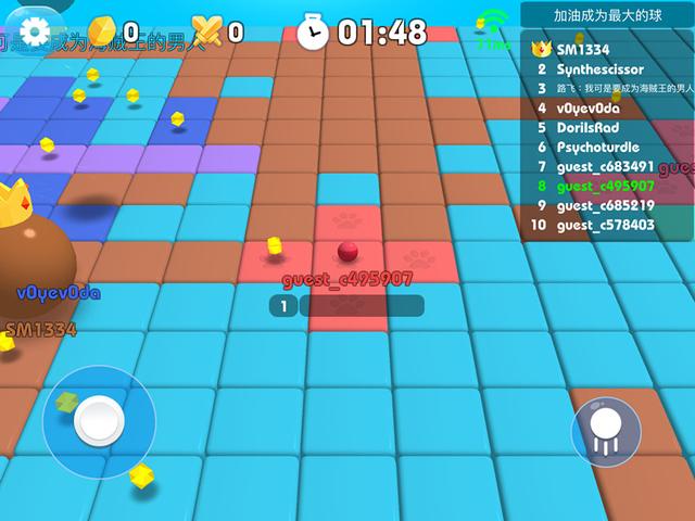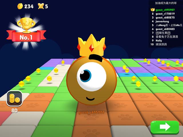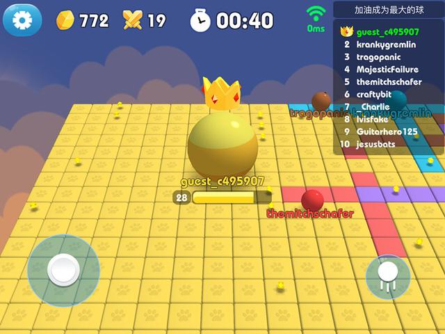 吸能壮球体,越大越超神:收集能量水晶不断成长,体积越大实力越强,最终称霸全场。