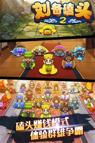 适合玩家类型:手速快的玩家,控制刘备磕头。这种玩法考验玩家的反应速度,点击屏幕上方的朝廷界面即可让刘备开始磕头,每次磕头都能获得金币奖励。随着刘备等级的提升,单次磕头的收益会显著增加,形成良性循环。这种玩法特别适合喜欢即时反馈的玩家,赚钱效率与操作频率直接相关。