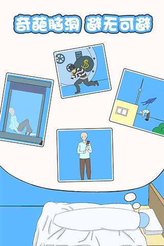 游戏最吸引人的地方在于其天马行空的创意设计。每个梦境都像是一个精心设计的微型世界,从学生考试的美梦到政客的幻想,从越狱的刺激到实验室的疯狂,每个场景都充满惊喜。游戏采用了清新简约的简笔画风格,搭配幽默诙谐的剧情,让整个破梦过程充满欢乐。操作方式简单直观,但谜题设计却充满挑战性,需要玩家开动脑筋才能找到破解之道。