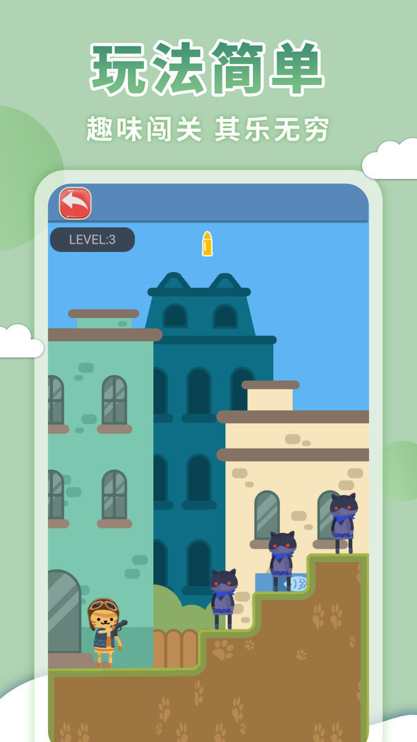 游戏的趣味闯关玩法简单易上手,欢乐无穷的战斗体验让人沉浸其中。稀有皮肤的收集系统为游戏增添了更多个性化元素,不同皮肤还能带来不同的游戏体验。玩家需要巧妙利用子弹解决场景中的所有敌人,只有彻底消灭对手,才能成为真正的英雄。