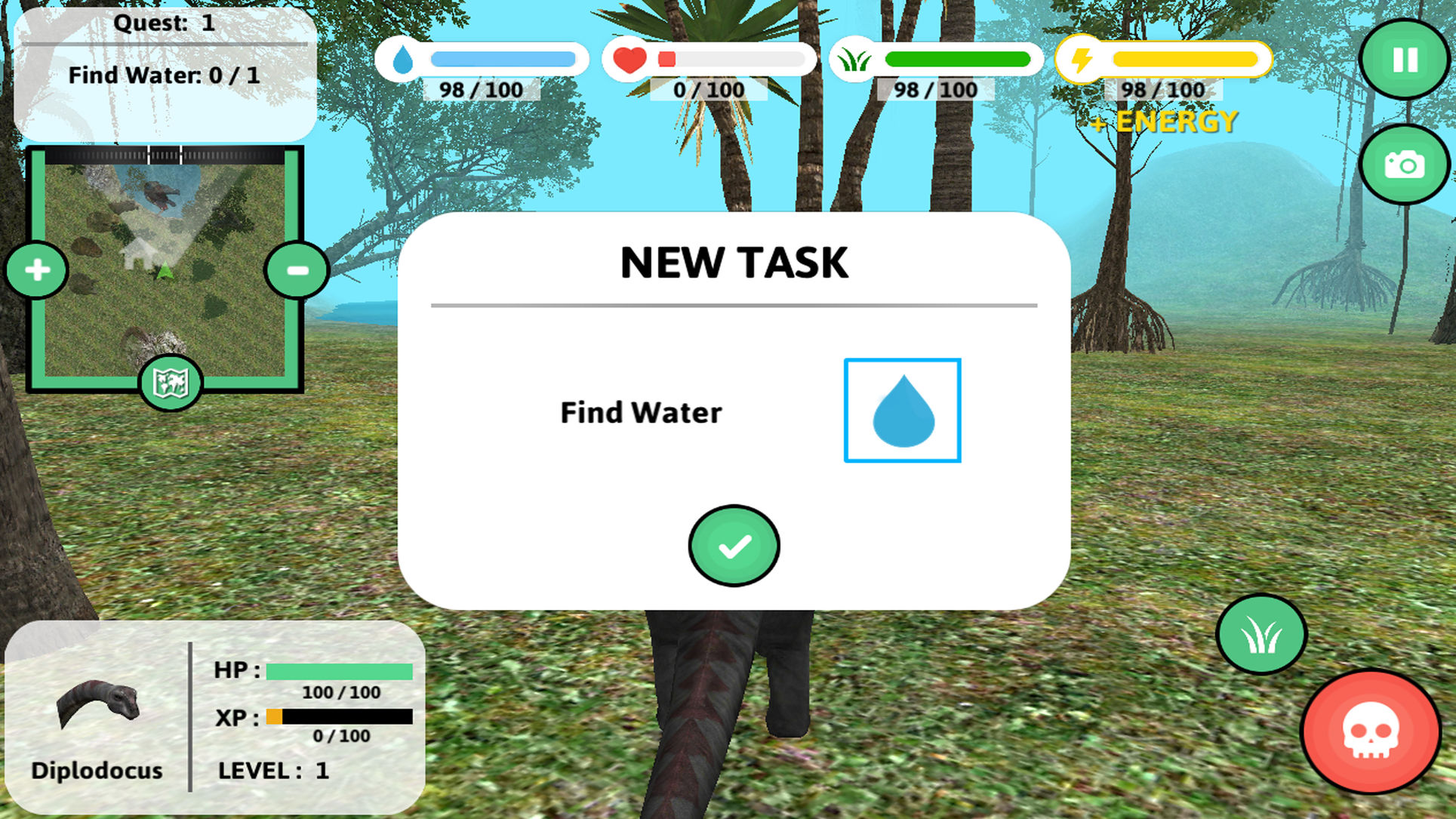 本作引入了拟真度极高的生存机制:饥饿度、口渴值和体力值都需要时刻关注。觅食系统要求玩家辨别不同植物的营养价值,某些特殊植物还能提供临时buff。繁殖系统是游戏的一大亮点,找到合适的伴侣后可以繁衍后代,组建自己的梁龙家族。任务系统贯穿整个生命周期,从初级的生存训练到后期的族群保卫战,每个阶段都有独特的挑战等待完成。特别设计的"霸主之路"让食草龙也能通过智慧和策略成为食物链顶端的强者。