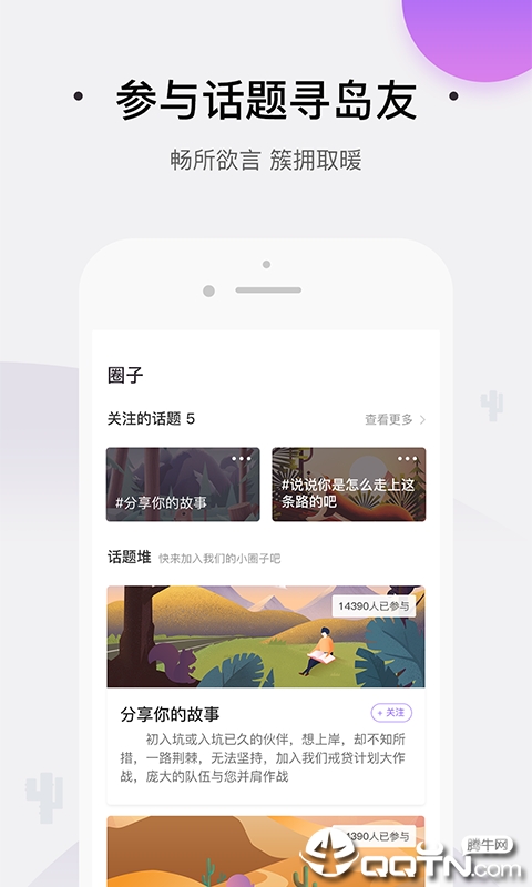 参与话题寻岛友,丰富的讨论区让你随时分享心得,获得即时反馈和鼓励;