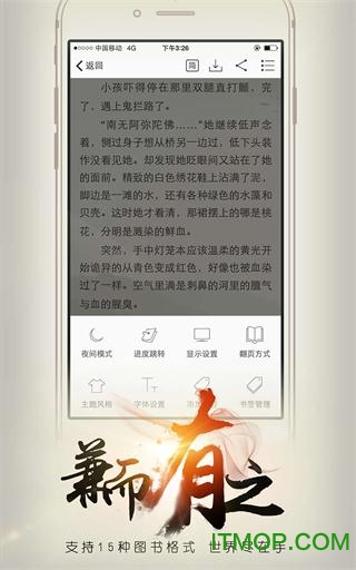 支持TXT、CHM、UMD、ZIP、EPUB、CBZ、JPG、PNG等多种文本和图片格式阅读,让您可以一网打尽网上热门流行小说。