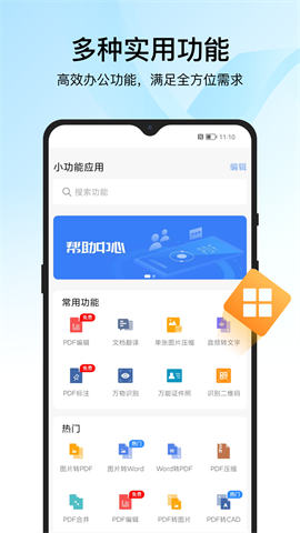更多办公小助手:图片识别文字、拍照翻译、语音识别、语音翻译、wifi传输、PDF压缩、PDF合并拆分、PDF解密解密、OFD转PDF、文档转长图、PDF签名;