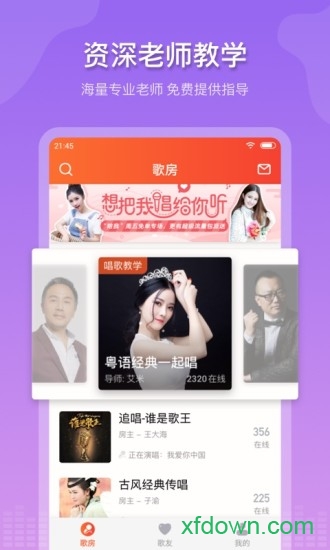想把我唱给你听?那就快来追唱K歌App吧!这里不仅是一个让你尽情歌唱的舞台,更是一个专业的学习平台。无论你是想提升唱功还是结交志同道合的歌友,这里都能满足你的需求。平台特别设计了分年龄段匹配功能,让你轻松找到同龄伙伴,一起享受音乐的快乐。专业导师团队随时为你提供一对一指导,从基础发声到高级技巧,手把手教你唱出好声音。别再犹豫了,现在就下载追唱K歌App,开启你的音乐之旅!