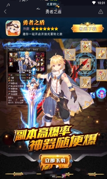 勇者之盾》是一款集即时战斗、生存冒险与角色扮演于一体的精品手游,为玩家带来前所未有的沉浸式体验。游戏精心设计了三大职业体系与六种独特角色,每个角色不仅拥有专属技能树和成长路线,更通过细腻的建模与动态光影技术完美还原经典形象。战斗系统采用多段连招机制,配合粒子特效与物理碰撞反馈,让每一次挥剑、施法都充满打击感。游戏内上百套时装支持自由混搭,玩家可随心打造个性化形象,而由交响乐团实录的背景音乐更将冒险氛围推向高潮。