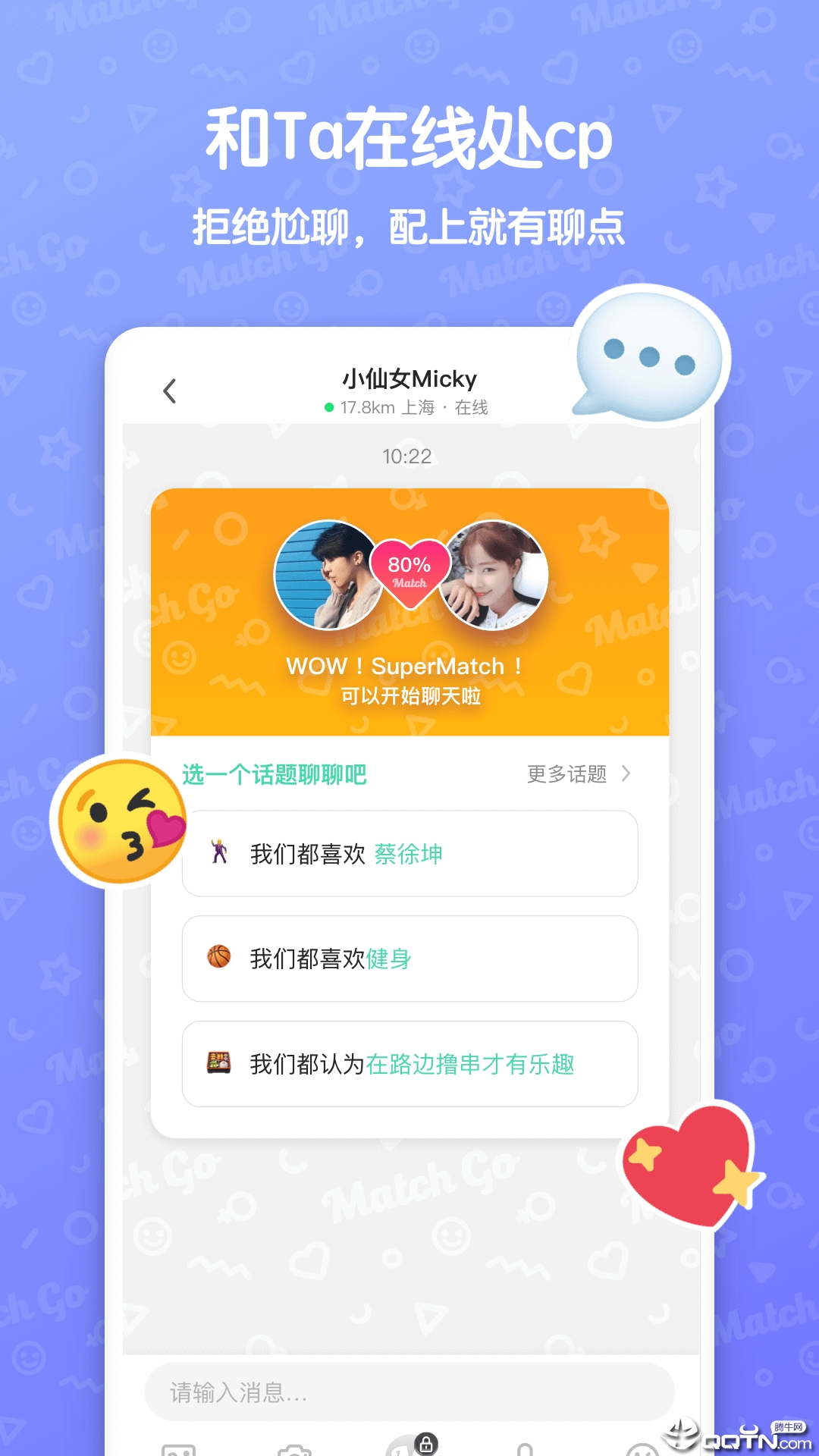 MatchGoapp是一款颠覆传统社交模式的创新互动平台,它以"共同点"为核心理念,通过智能算法为用户精准匹配最契合的灵魂伴侣。在这个快节奏的时代,MatchGoapp致力于打破社交壁垒,让每一次相遇都充满惊喜与共鸣。平台独创的"百里挑一"和"问答匹配"等趣味玩法,不仅让社交过程变得轻松有趣,更能帮助用户在茫茫人海中快速找到志同道合的伙伴。