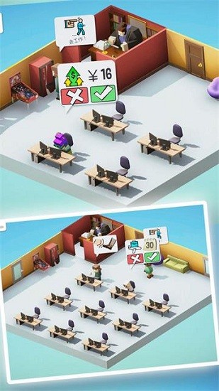 感受这个职场中不一样的欢乐气氛,如果长期没有盈利,那就带着职工们上天台准没错。游戏通过夸张的表现手法展现了职场中的趣事,让玩家在轻松的氛围中体验经营乐趣。