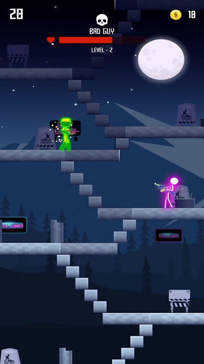 游戏采用简单直观的操作方式,左手控制移动,右手控制瞄准射击,新手也能快速上手。游戏包含数十个精心设计的关卡,每个关卡都有独特的地形和敌人配置。玩家需要精准控制射击角度和时机,利用物理反弹等特性来完成高难度挑战。游戏还支持多种特殊玩法模式,如限时挑战、无限模式和Boss战等,确保玩家能持续获得新鲜的游戏体验。流畅的运行表现和精美的画面效果让游戏更具吸引力。