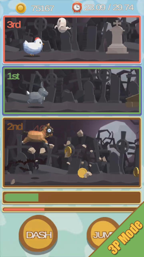 这款3D横版跑酷游戏凭借精致的卡通渲染技术,将动物角色塑造得活灵活现,小猪奔跑时晃动的耳朵、小鸡腾空时飘落的羽毛等细节令人忍俊不禁。创新设计的双轨制赛道系统让玩家需要同时注意地面陷阱和空中障碍,墓地关卡中突然出现的透明幽灵更是带来刺激的躲避体验。通过完成每日任务获得的金币不仅能解锁新角色,还可以为小动物购置时尚的太阳镜、小书包等配饰,打造个性化萌宠战队。
