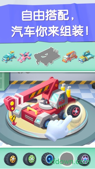 游戏提供了丰富的汽车DIY功能,小朋友可以自由搭配轮胎、车灯、贴纸等配件,创造出24款不同风格的车型。从警车到压路机,每种车型都有独特的功能和驾驶体验。组装完成后,小朋友可以驾驶自己的作品环游城市,挑战各种地形,在安全的环境中体验驾驶的乐趣。