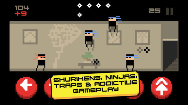 游戏采用横屏操作模式,简洁明快的像素画风让玩家能够快速上手。操作方式极其直观,仅需通过前后左右移动即可控制角色,省去了复杂指令的烦恼。游戏场景设定在一个神秘的忍者屋敷中,玩家需要穿梭于不同的房间完成闯关任务。每个房间都经过精心设计,有的潜伏着敌对忍者,有的布满致命陷阱,玩家必须运用智慧与技巧逐一攻克这些挑战。随着关卡推进,房间的难度会逐步提升,考验玩家的应变能力与策略思维。