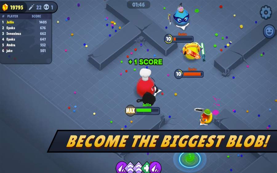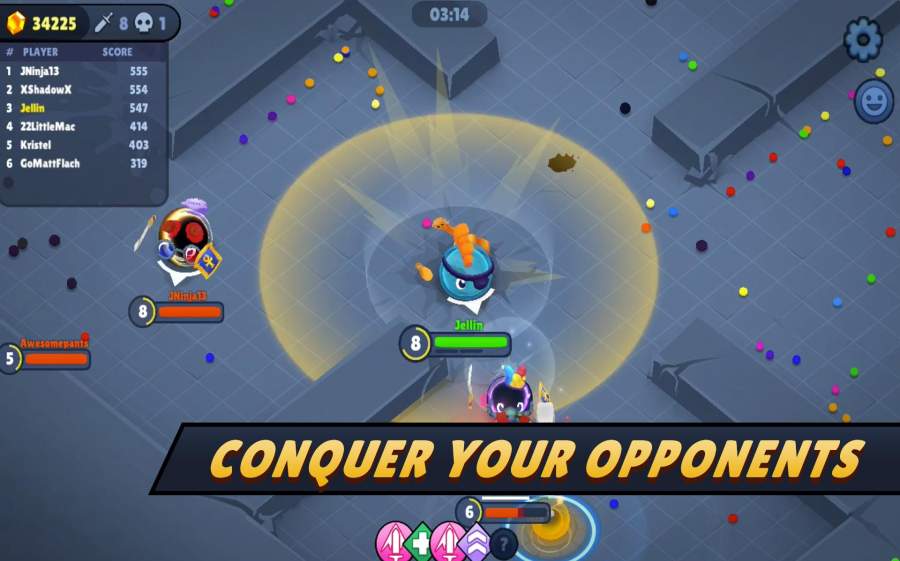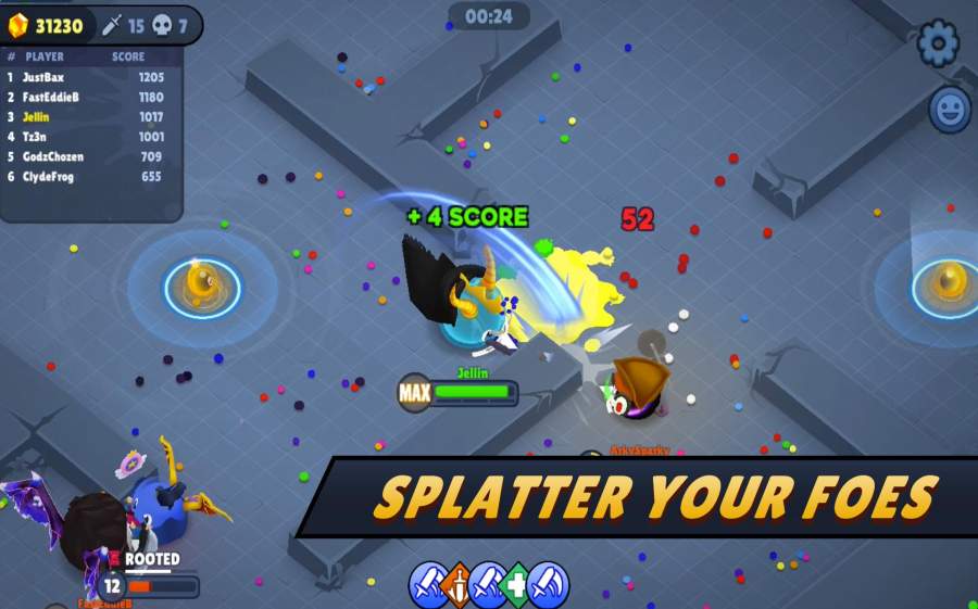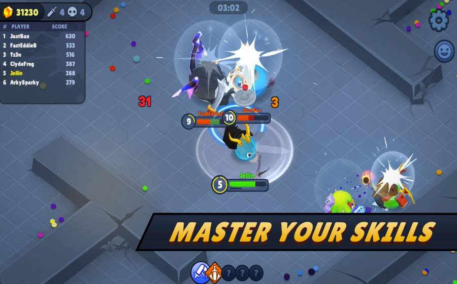在这个充满欢乐的战斗世界中,你将体验到最纯粹的竞技乐趣。游戏提供数十种造型各异的武器供玩家选择,从传统的剑、斧到搞怪的油漆滚筒、煎锅,每件武器都拥有独特的攻击方式和特效。通过收集场上的能量斑点,你的果冻战士可以不断成长,解锁更多强力技能和特殊能力。游戏支持单人练习、团队竞技等多种模式,无论是想独自磨练技术,还是与好友组队开黑,都能找到适合自己的玩法。