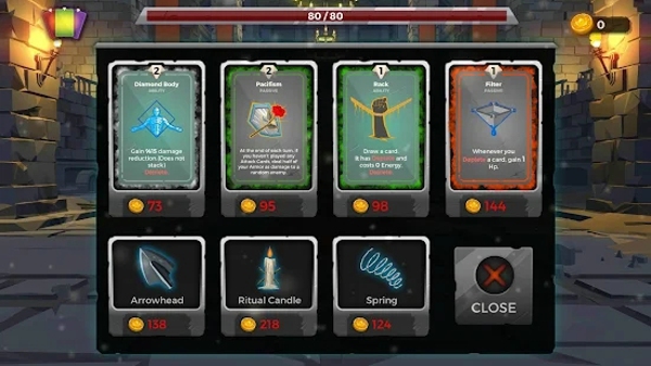 这是一款让玩家沉浸在地下城冒险中的卡牌游戏,通过抽卡系统获得各种强力卡牌来克服重重困难。游戏强调观察力和策略性,需要玩家注意地图中的每个细节,用最合理的方式解决问题。收集合适的卡牌组合能让通关变得更加轻松,但要注意卡牌数量并非越多越好,精简实用的卡组往往更有效果。独特的回合制战斗系统让玩家能够发现卡牌之间的强大协同效应。面对史诗级boss时,灵活多变的策略将获得丰厚回报。程序生成的地图系统确保每次冒险都充满新鲜感,随机出现的商店、篝火和陷阱让游戏体验更加丰富多彩。