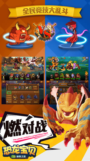 这里曾是恐龙们和谐共处的世外桃源,各种恐龙在这里过着平静美好的生活。然而黑暗势力的突然入侵打破了这片土地的宁静,邪恶力量正在肆意破坏这片乐土。作为被命运选中的勇者,你将肩负起拯救恐龙世界的重任。通过收集不同属性的恐龙和精灵,组建强大的战斗阵容,带领它们对抗黑暗势力,最终恢复这片土地的和平与繁荣。