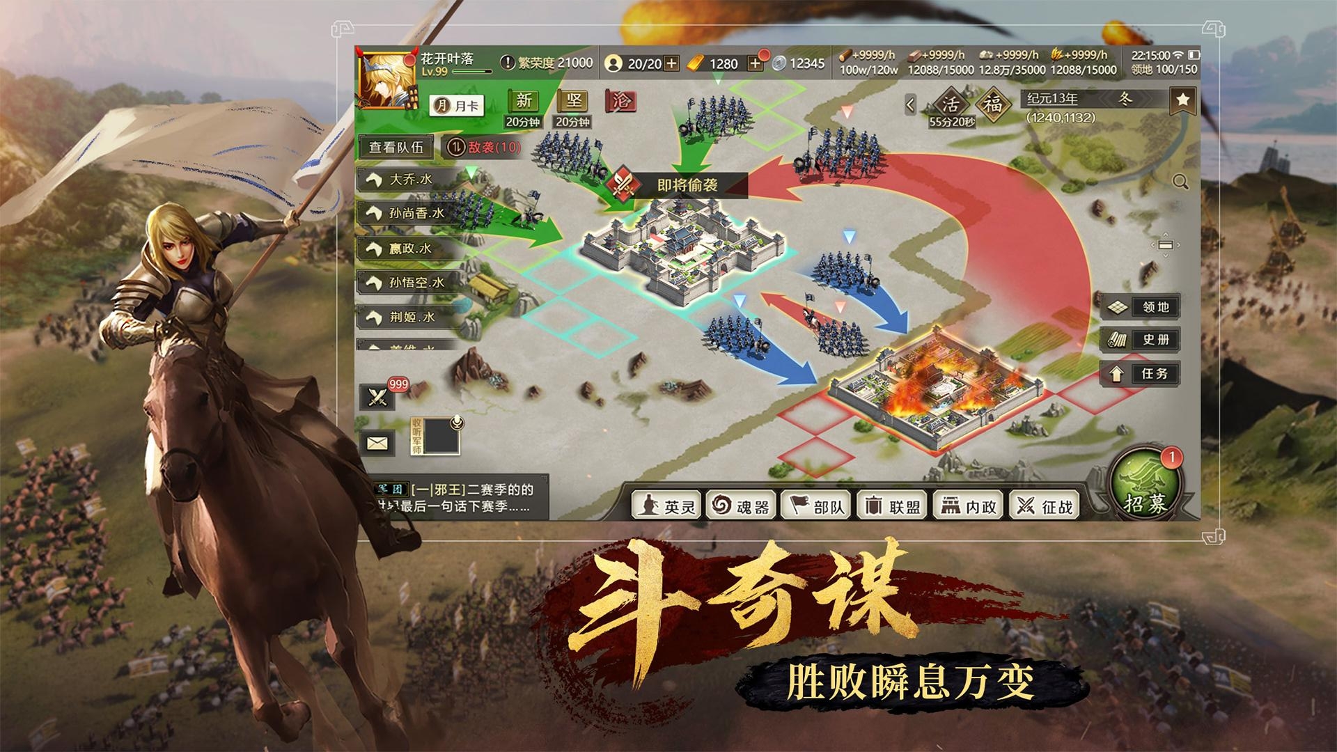 《全战天下》将带你穿越时空,亲历那个英雄辈出、战火纷飞的年代。无论是追求热血战斗的激情,还是享受运筹帷幄的智慧,亦或是体验乱世情缘的浪漫,这款游戏都能满足你的期待。现在就加入《全战天下》,开启属于你的传奇征程!