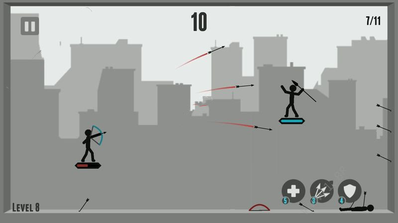 在游戏中,玩家需要精准控制弓箭的力度和角度,瞄准敌人的要害部位进行射击。头部射击可以一击毙命,而身体其他部位需要两次命中才能击败敌人。游戏界面清晰显示角色的生命值,当受到攻击时血槽会相应减少。玩家可以通过商店购买各种辅助道具,包括威力巨大的炸弹和恢复生命的治疗包。防御性道具如能量护盾可以暂时免疫伤害,合理使用这些道具是通关的关键。