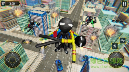 喷气飞行火柴人是一款完全免费的开放世界动作游戏,玩家将扮演一位身怀绝技的都市守护者。在这个犯罪横行的虚拟大都会中,你需要24小时待命,随时准备应对各种突发事件。游戏特别设计了智能警报系统,当银行抢劫、车辆追逐或人质劫持事件发生时,你必须立即启动喷气背包赶往现场。值得一提的是,游戏中的反派AI具有学习能力,他们会根据玩家的行动模式调整策略,这使得每次交锋都充满变数。除了主线任务外,城市中还隐藏着数十个随机触发的支线剧情,让冒险体验更加丰富多彩。