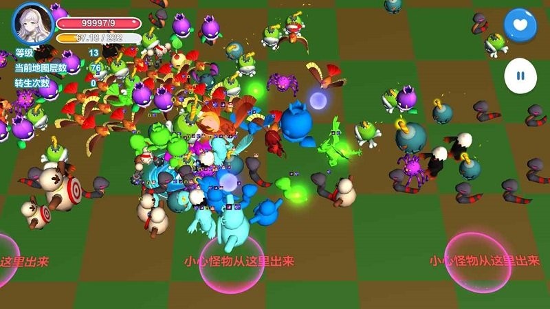 游戏采用固定点位刷怪机制,精心设计的怪物分布让割草战斗更加爽快。每次转生后都能解锁全新技能体系,超过200种技能效果组合带来无限可能。面对潮水般涌来的敌人,您需要巧妙运用各类技能招式,体验以一敌百的战斗快感。游戏还特别设计了动态难度系统,会根据玩家实力自动调整挑战强度,确保游戏始终充满新鲜感。