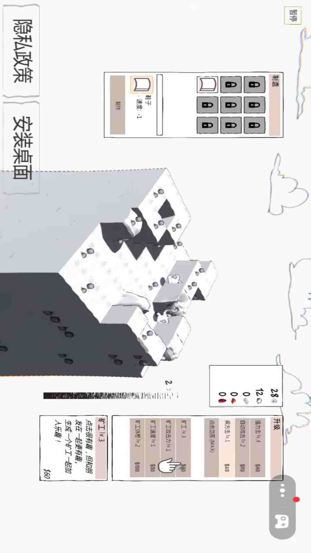 在这款轻松有趣的挖矿游戏中,玩家只需点击屏幕上的方块就能获得各种资源。通过收集这些资源,你可以不断提升角色的攻击力,解锁更多强力技能,还能解救被困的空洞精灵加入你的挖矿队伍。随着游戏进程的推进,你将组建起一支强大的挖矿小队,向着最终目标——挖穿那座看似不可逾越的大山发起挑战。游戏操作简单易上手,但想要完全挖通山脉需要合理的资源分配和策略规划。