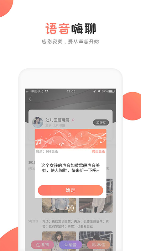 - 智能匹配:系统会根据用户的年龄、兴趣爱好等资料进行智能推荐,精准匹配同城活跃用户,大幅提升交友效率!