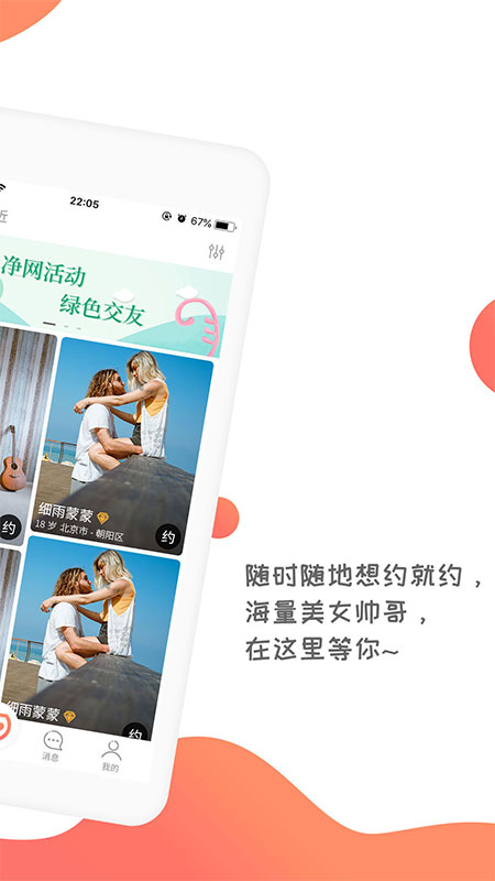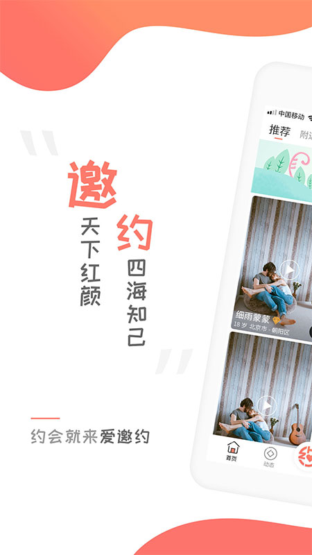 爱邀约是一款专为单身人士打造的优质手机社交平台,致力于为用户提供高效、安全、有趣的交友体验。平台拥有庞大的用户群体,汇聚了来自全国各地的优质单身人士,无论你是想寻找真爱还是结交新朋友,这里都能满足你的需求。除了丰富的线上互动功能,爱邀约还会定期组织各类同城活动,让你在轻松愉快的氛围中结识志同道合的朋友,大大提升脱单成功率。现在就下载爱邀约,开启你的浪漫之旅吧!