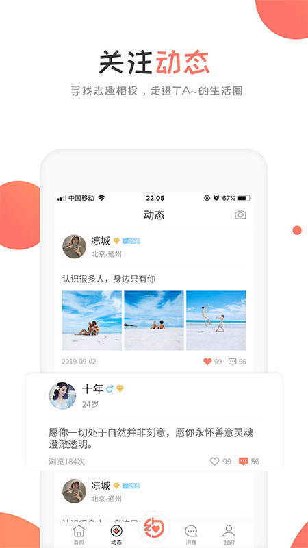 - 动态分享:支持发布心情动态和话题讨论,通过日常互动发现志同道合的朋友,让交友过程更加自然有趣!