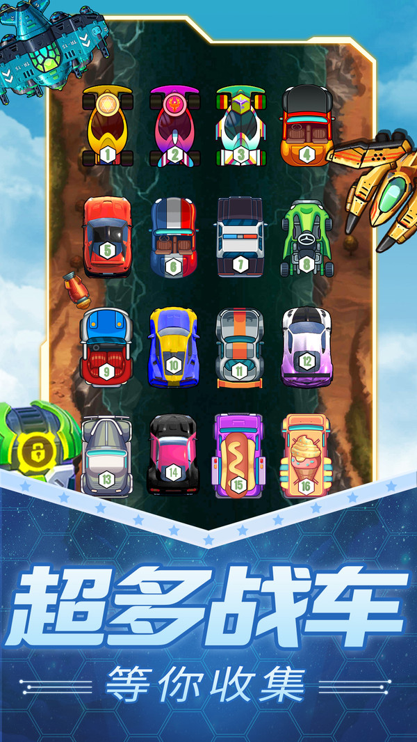 游戏画面劲爆炫酷,战斗过程满屏幕都是炮弹,显得十分激烈,玩起来很带感。精心设计的特效和音效让每场战斗都充满视觉冲击力,赛车碰撞、武器发射等细节都表现得淋漓尽致,为玩家带来沉浸式的游戏体验。
