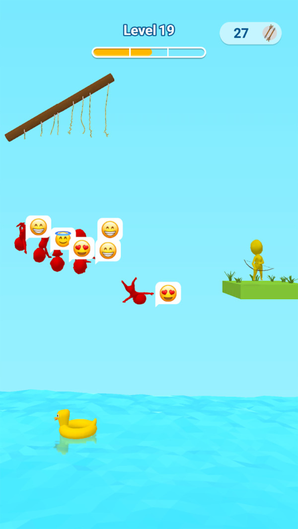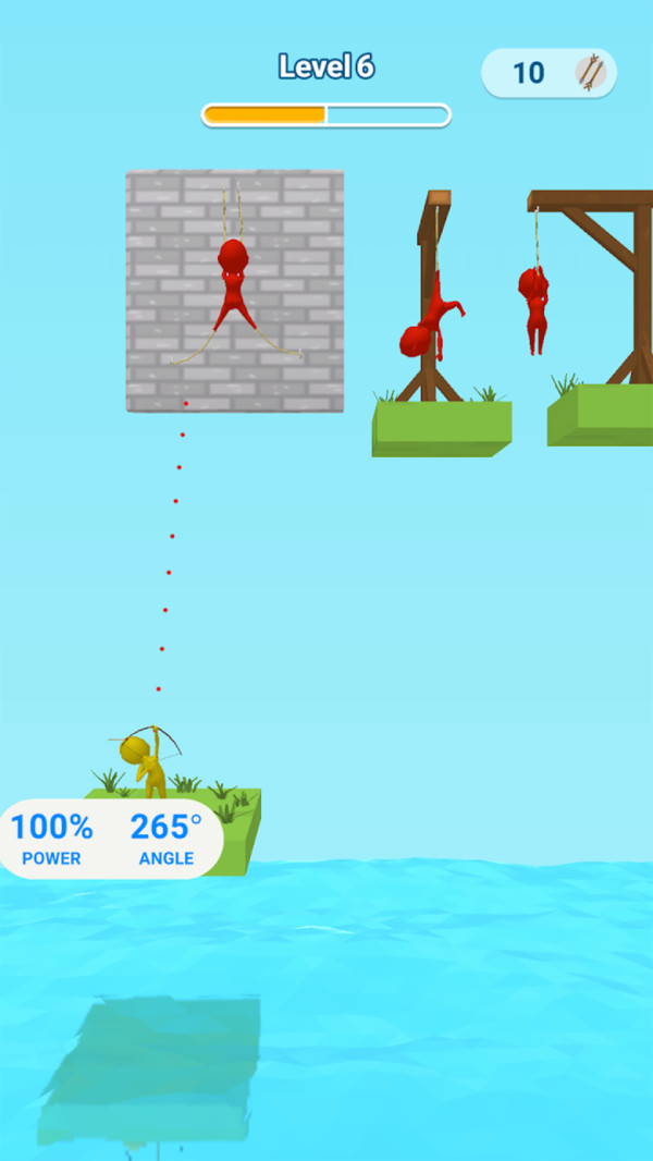 作为射箭大师,你不仅要解救普通市民,还会遇到需要特殊救援方式的VIP角色。游戏物理引擎真实模拟了弓箭的抛物线运动,箭矢的飞行速度、着弹点都会影响救援效果。关卡中设置了移动平台、弹跳装置、风力场等多样化障碍,后期还会出现需要连续射击的复合型机关。每个成功解救的市民都会发出欢呼,失败时则会呈现夸张有趣的动画效果,让紧张的解救过程充满欢乐。