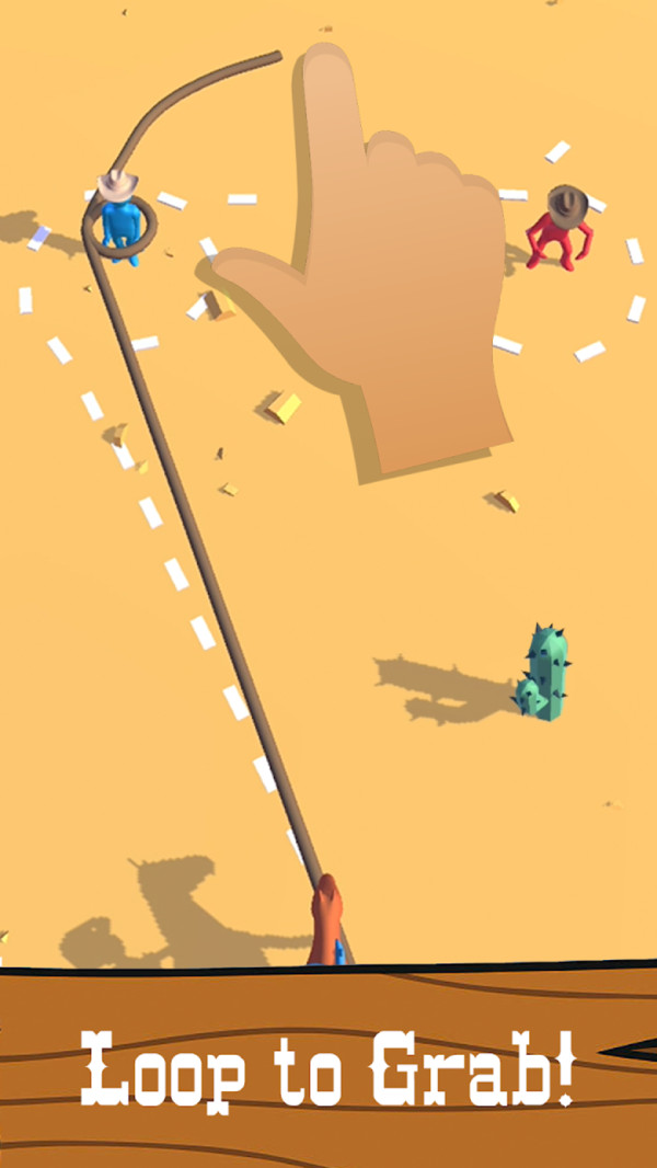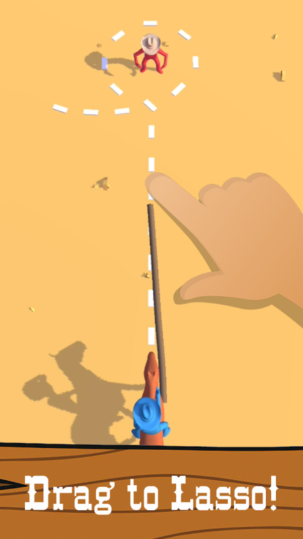 来一场套人大战吧!是牛仔高手,就用绳索熟练地套住人吧!在牛仔绳索大战游戏中,玩家将来到西部,扮演一名骑马的西部牛仔,你需要将其他牛仔用你的套绳给套起来。游戏玩法非常简单,按住并划动屏幕就能掷出套绳,把所有人都套起来之后松开就能收回来。非常有趣好玩的休闲游戏。游戏还提供了多种场景和挑战模式,让你在套索的过程中体验不同的西部风情。