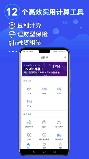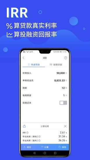 内置6种专业计算器,涵盖房贷、车贷、投资回报等常见场景,满足不同用户的计算需求;