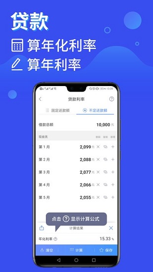灵活的贷款计算模式,支持固定还款额和浮动还款额两种计算方式;