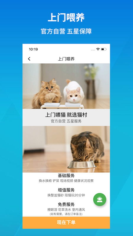 猫村推出的上门喂猫服务采用官方自营模式,提供五星级安全保障。基础服务包括换水换粮、喂罐头零食、铲屎、现场视频记录、健康状况观察以及详细的喂养报告。增值服务可选择更换整盆猫砂,服务时长延长至20分钟。我们还提供免费附加服务,如擦眼泪、花草浇水、室内通风等,让你的爱猫在家也能得到贴心照顾。