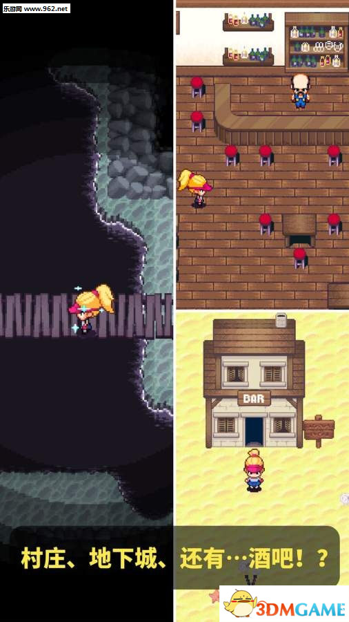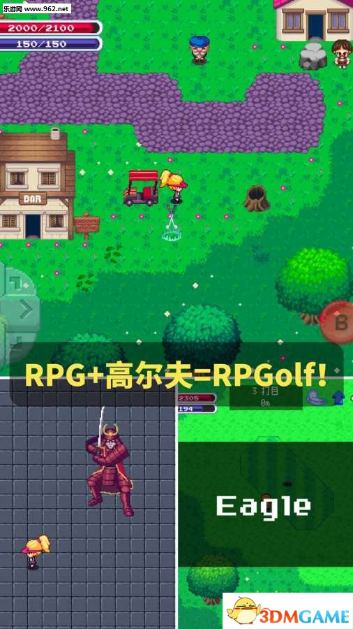 游戏完美融合了高尔夫运动与角色扮演元素,玩家可以在复古像素风格的世界中享受双重乐趣。游戏包含九个各具特色的高尔夫球洞场景,每个场景都隐藏着不同的危险与挑战。玩家需要一边提升高尔夫球技,一边与各种怪物战斗,通过精准的击球来击败敌人。游戏场景丰富多变,从阳光明媚的练习场到阴森恐怖的地下城,从热闹的村庄到神秘的酒吧,每个场景都经过精心设计。