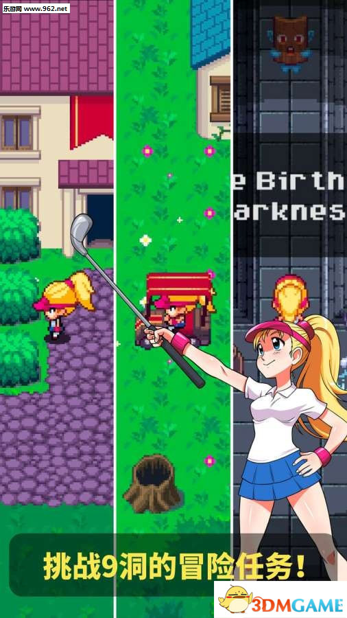 就在这危急时刻,一位天赋异禀的少女站了出来。她不仅拥有惊人的高尔夫球天赋,更有着拯救王国的决心。她意识到,要成为真正的顶级高尔夫球手,必须先击退这些入侵者。于是,她拿起心爱的高尔夫球杆,踏上了这段既荒诞又热血的冒险旅程。玩家将跟随这位少女,在九个精心设计的高尔夫球洞中展开冒险,用高尔夫球杆对抗各种怪物,逐步收复失地。