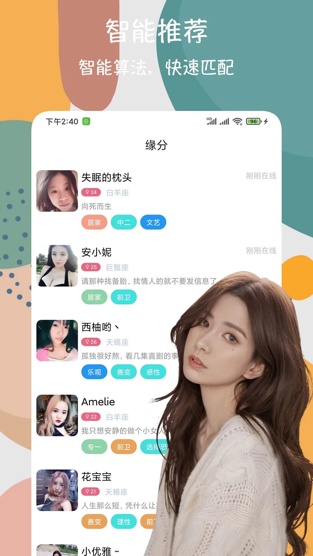 【浪漫呼应,应你所想】一键搭讪功能打破社交坚冰,智能推荐附近优质用户。私密聊天室保护用户隐私,多种互动小游戏增进彼此了解。从线上互动到线下约会,全程护航你的社交旅程。