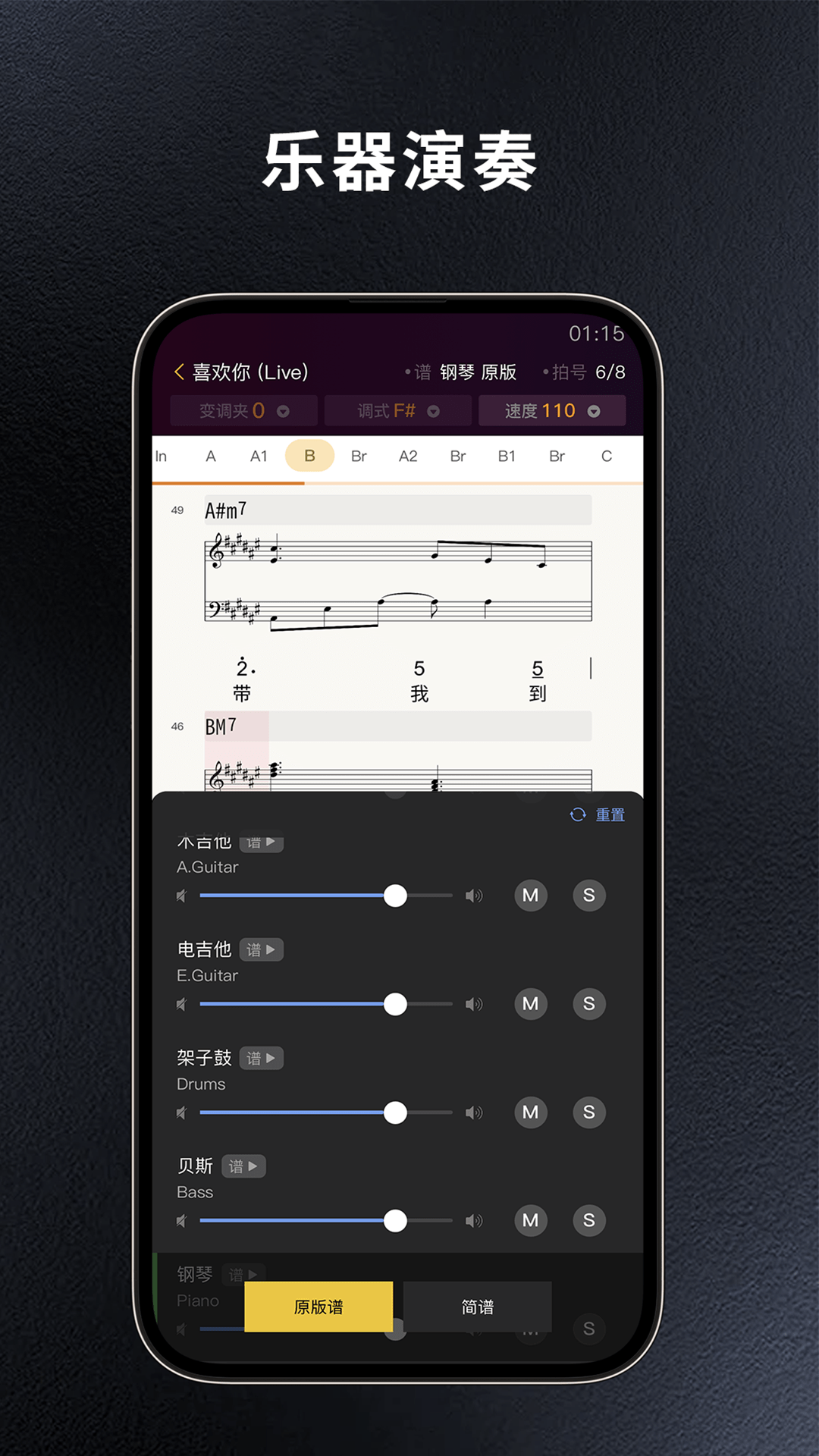 专为乐队打造,海量乐谱配有原版和弦及演奏技法,高清伴奏同步播放,分轨可调,变速变调......