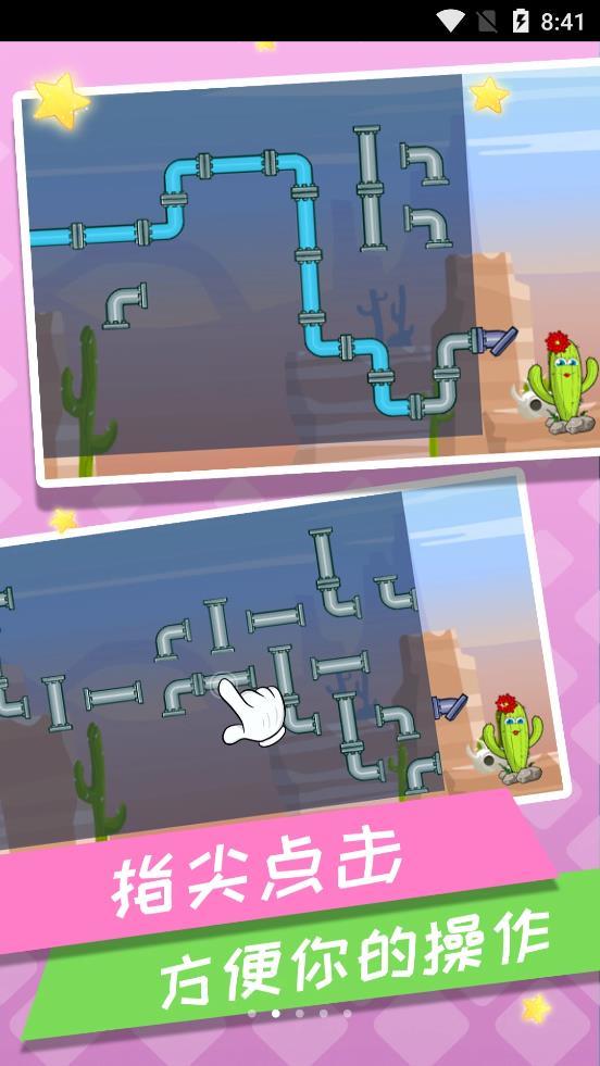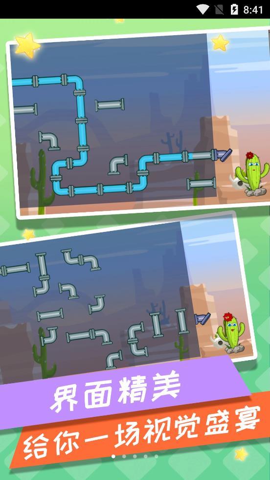 规则十分简单,只需要将乱七八糟的管道进行重新排列,拼凑出一条可以直达仙人掌的水源。清晰的游戏目标让玩家能够快速上手,专注于解谜过程。