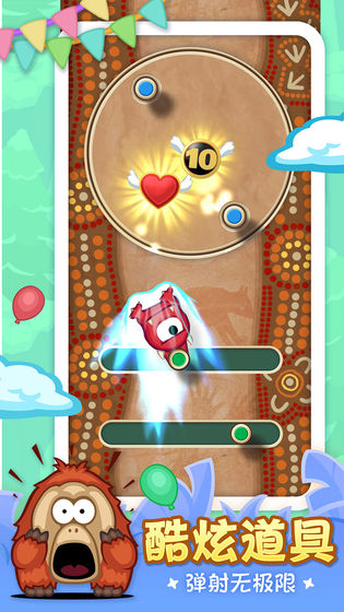 弹个猴的核心玩法简单而富有策略性。玩家需要选择心仪的小动物角色,带领它们穿越充满机关陷阱的神秘森林。游戏采用直观的触控操作,只需用手指拖动角色向反方向拉动,然后松手即可完成弹射动作。在攀爬过程中,玩家需要精准计算弹射角度和力度,确保角色能够抓住下一个落脚点。随着游戏进程的推进,玩家将解锁更多有趣的玩法模式,包括幸运转盘和弹珠台等特色玩法。幸运转盘玩法延续了攀爬的基本操作,玩家需要控制角色弹射到转盘特定位置获取金币奖励;而弹珠台则让角色在特定区域弹跳碰撞,通过击打障碍物来收集金币和道具。