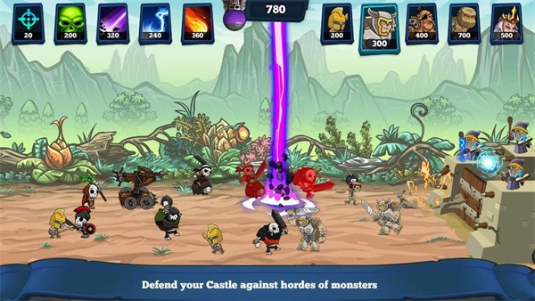 城堡:作为防御核心,升级城堡可以解锁更多防御设施和特殊技能。高级城堡还能提供额外的魔法值恢复速度。