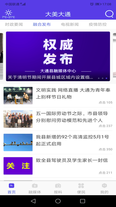 大通APP是大通县官方打造的综合性政务服务平台,集新闻资讯、政务服务、便民功能于一体。平台整合了电视、广播、图集、直播等多媒体资源,为用户提供本地化的新闻速递与政务办理服务。通过智能推送和24小时更新机制,确保居民第一时间获取县内动态。其特色在于将传统媒体与数字技术深度融合,构建"媒体+服务"的创新模式,让群众足不出户即可享受新闻浏览、事务办理、民生反馈等一站式服务,真正实现"数据多跑路,群众少跑腿"的便民理念。