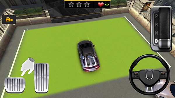 首先我们需要选择方向盘放置的位置,这样更有利于我们驾驶;拖拽屏幕可以更改我们查看车辆的视角;点击左上角的按钮可以切换成第一视角;左从左到右边依次为刹车、油门,方向盘,左上方可以切换视角,右上方为档位,根据你的习惯来调整汽车倒车入库的位置,合理的把握汽车的方向,不要发生碰撞,将车以最佳位置倒入库中。