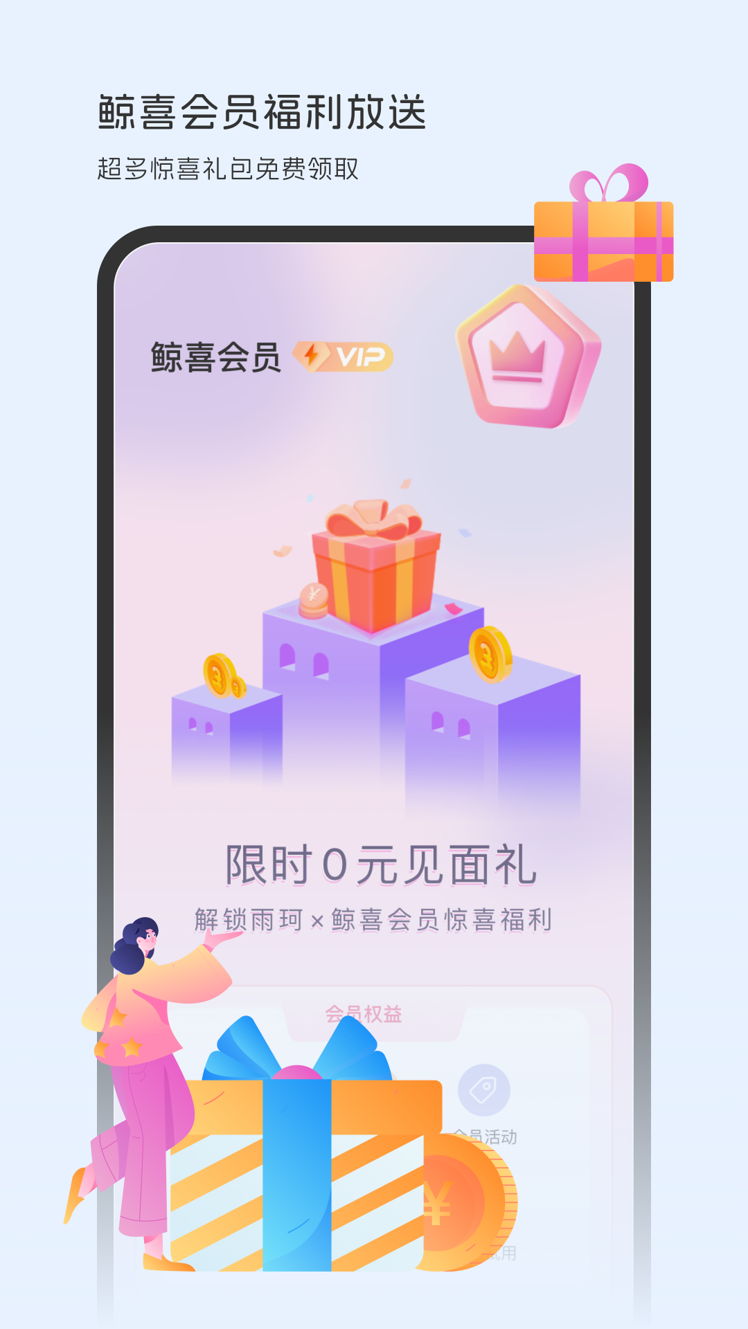 加入鲸心会员,您将享受更多专属权益:无广告的纯净体验、专家一对一咨询服务、定制化健康方案等。我们还准备了海量惊喜福利,包括精美礼品、优惠券、线下活动邀请等,让您的健康之旅充满惊喜。